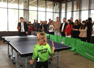 Osmangazi Belediye Başkanı Erkan Aydın, konuşmasının ardından masa tenisinde dünya 3’üncüsü olan özel sporcu Melih Işık ve bir başka özel sporcu Burak Çetin ile yaptığı gösteri maçı yaptı. Masa tenisinde adeta usta sporculara nazire yaparcasına vuruşlar yapan Başkan Aydın, genç sporculara karşı başa baş bir mücadele ortaya koydu. Hem Başkan Aydın hem de genç sporcular, yaptığı vuruşlar ile izleyenlerden alkış aldı.
