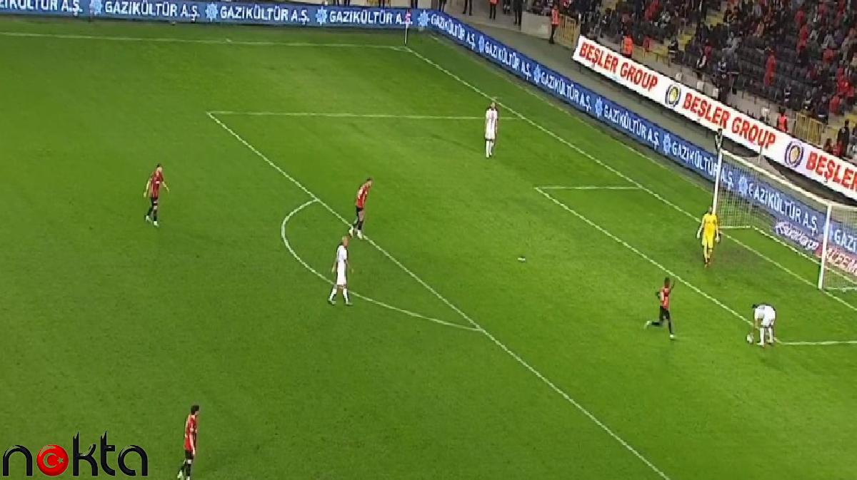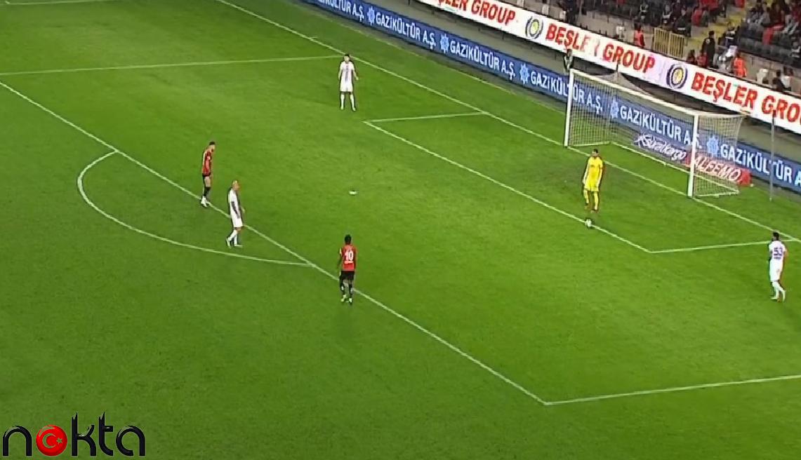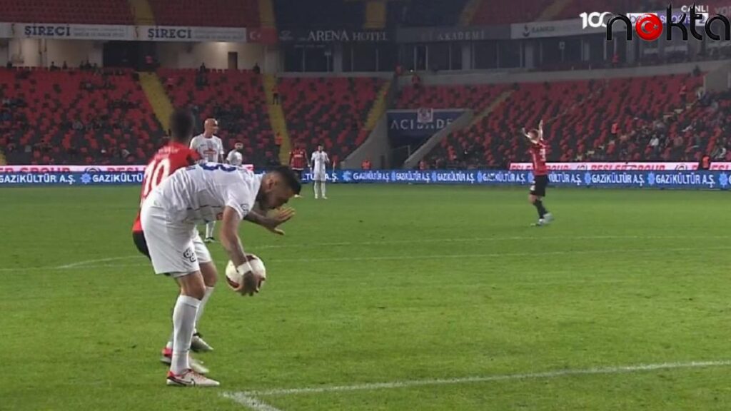 Bir kadro aut atışıyla oyuna başlarken, rakip ekip oyuncuları ceza alanı ve ceza yayı içerisinde bulunamaz. Lakin Gökhan Akkan’ın topa dokunduğu sırada, Gaziantep FK oyuncusu Denis Draguş’un ceza yayı içinde olduğu görülüyor.