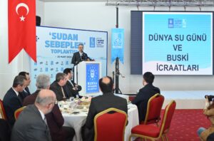 Yaklaşık 1 milyon 500 bun abonesi bulunan BUSKİ’nin abonelik işlemlerine e-devlet ve BUSKİ mobil ios ve android uygulamalarıyla da erişim sağlayabilmek mümkün olduğunu belirten Başkan Aktaş, merkez ve ilçelerinde konuşlandırılan 77 adet Buskimatik cihazıyla da fatura ödeme, EKS dolum yüklemesi ve harcamalara katılma payı tahsilatı yapılabildiğini belirtti. BUSKİ’nin ISO 9001 kalite yönetim sistemi ile ISO 45001 iş sağlığı ve güvenliği yönetim sistemi belgelerini Türkiye’de TSE’den ilk alan su ve kanalizasyon idaresi olduğunu kaydeden Başkan Aktaş, ISO 50001 enerji yönetim sistemi belgesiyle birlikte bir ilke daha imza attıklarını dile getirdi. Teknolojinin imkanlarını da sonuna kadar kullandıklarına değinen Başkan Aktaş,