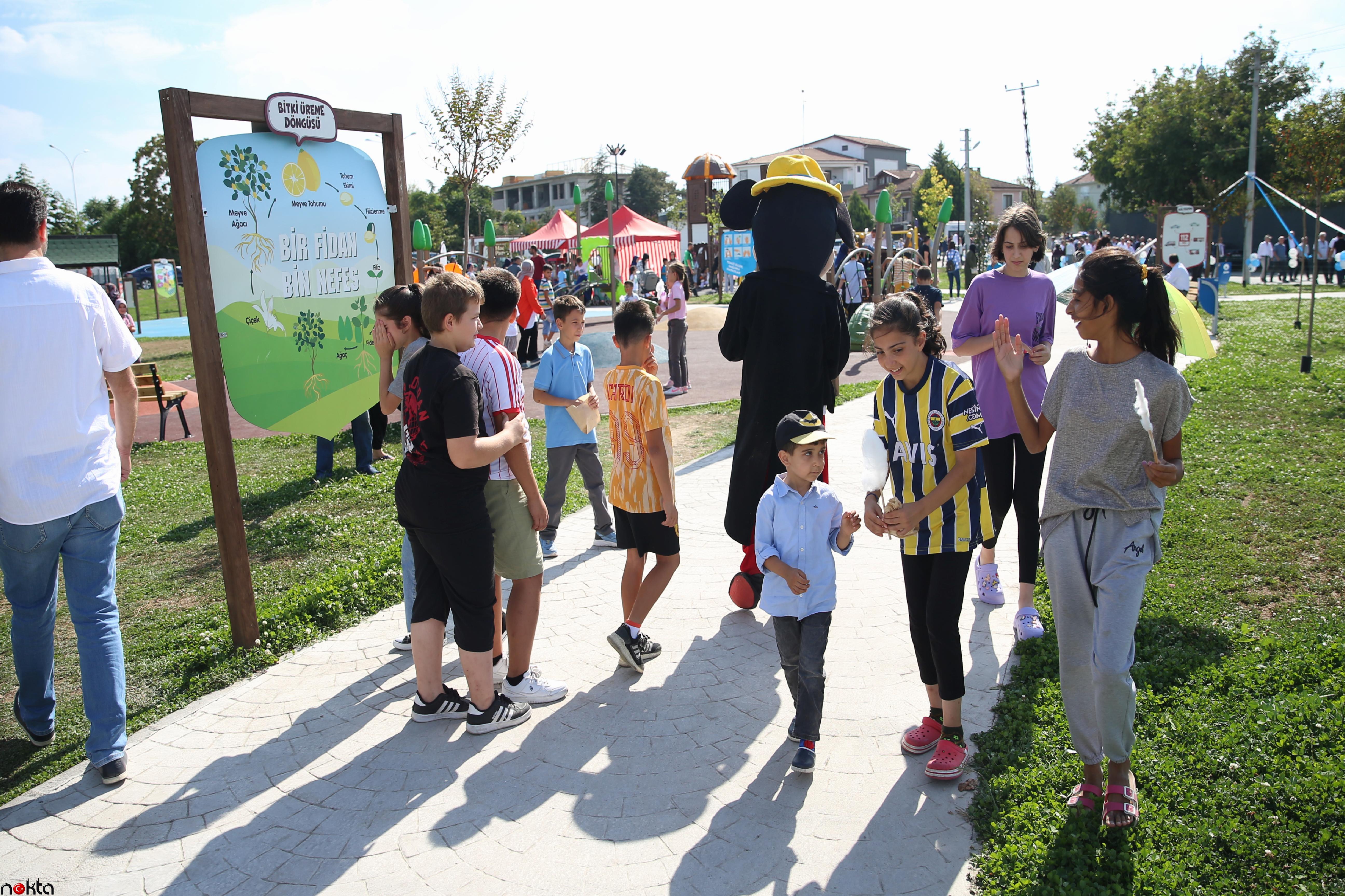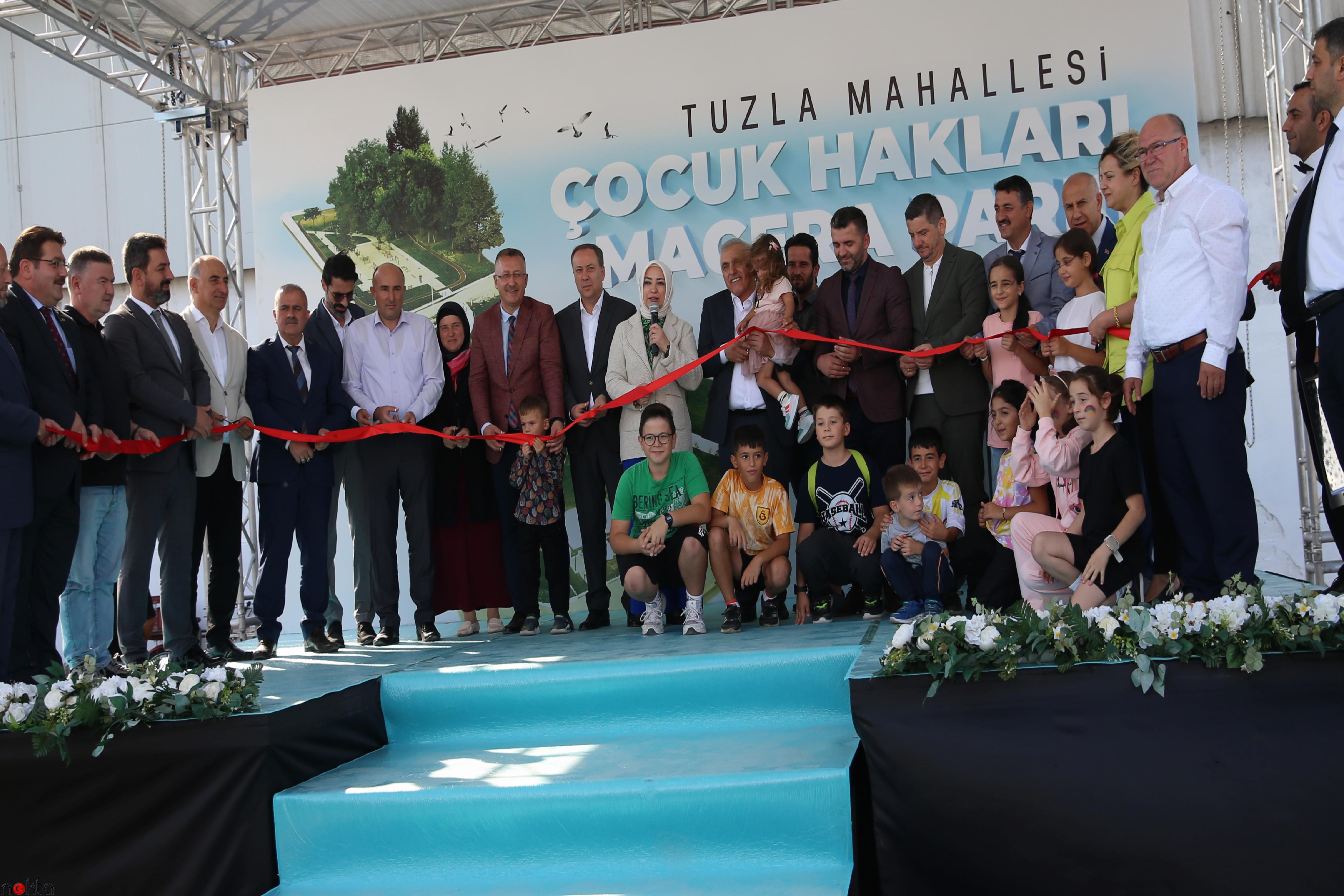 Konuşmalarından ardından protokol üyeleri ve çocukların katılımıyla parkın açılış kurdelesi kesildi.