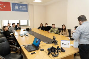 BURSA – Akıllı şehircilik projelerinde uluslararası inovasyon ittifakı Büyükşehir Belediyesi’nin yalnız yaşayan risk gurubundaki 65 yaş ve üzeri vatandaşları 7/24 takibe alan ‘Gönül Bağı’ projesi ile madde bağımlılığıyla mücadelede kullanılan ‘VR tabanlı Sağlıklı Yaşam Terapi Modeli’ projeleri, uluslararası alanda dikkat çekiyor. İspanya merkezli olarak sağlık sektöründe faaliyet gösteren GESEME Grup’tan bir heyet, hayata geçirilen akıllı sağlık uygulamalarını incelemek için Bursa Büyükşehir Belediyesi’ni ziyaret etti. Akıllı Şehircilik ve İnovasyon Dairesi Başkanlığı koordinatörlüğünde geliştirilen ve Sağlık İşleri Dairesi Başkanlığı’nca uygulanan her iki projenin işleyişi ile sahadaki uygulamalar hakkında konuk heyete bilgi verildi.