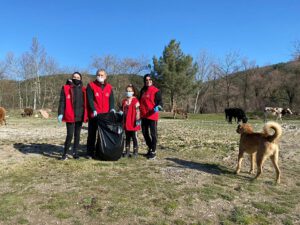Bunun yanında ellerine aldıkları çöp torbaları ile çevreye atılan atıkları da toplayan gönüllüler, çevre temizliğine katkı sağladı.