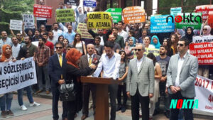 EĞİTİM – Türkiye’nin dört bir yanından gelenEn son asgari ücretimi de vermediler. Bazen hayatına son veren arkadaşlarımız oluyor, onlar gündem bile olmuyor. Ben, Doğu’da, 45 kişilik sınıflarda öğretmenlik yapıyorum. 100 bin atama çok bir rakam değil” dedi.