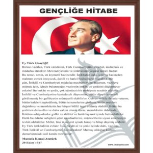 Ey Türk gençliği! Birinci vazifen; Türk istiklalini, Türk cumhuriyetini, ilelebet muhafaza ve müdafaa etmektir.