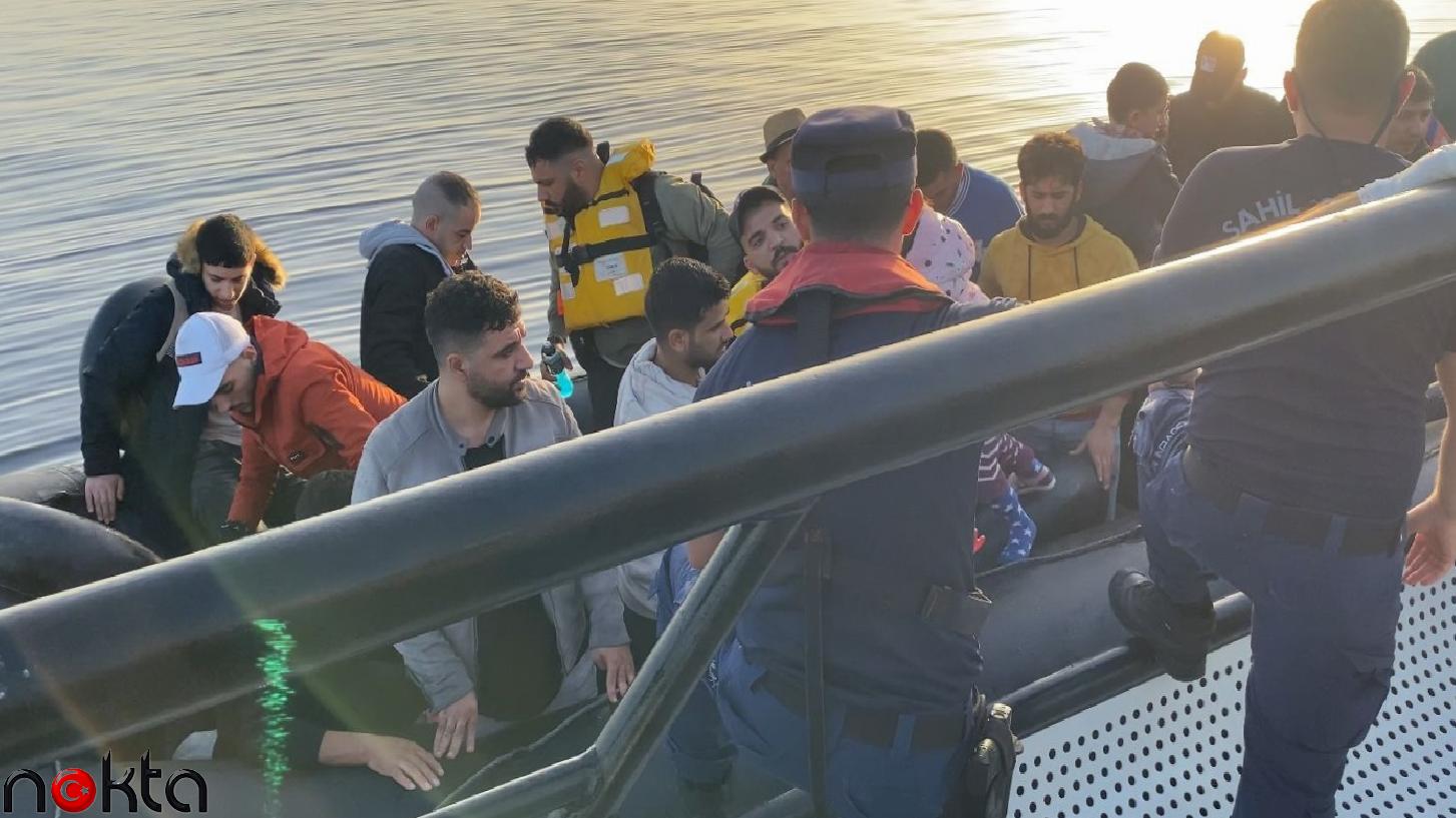 Görevlendirilen Kıyı Güvenlik botunca 2 lastik bot durdurularak içindeki 86 sistemsiz göçmen yakalandı.
