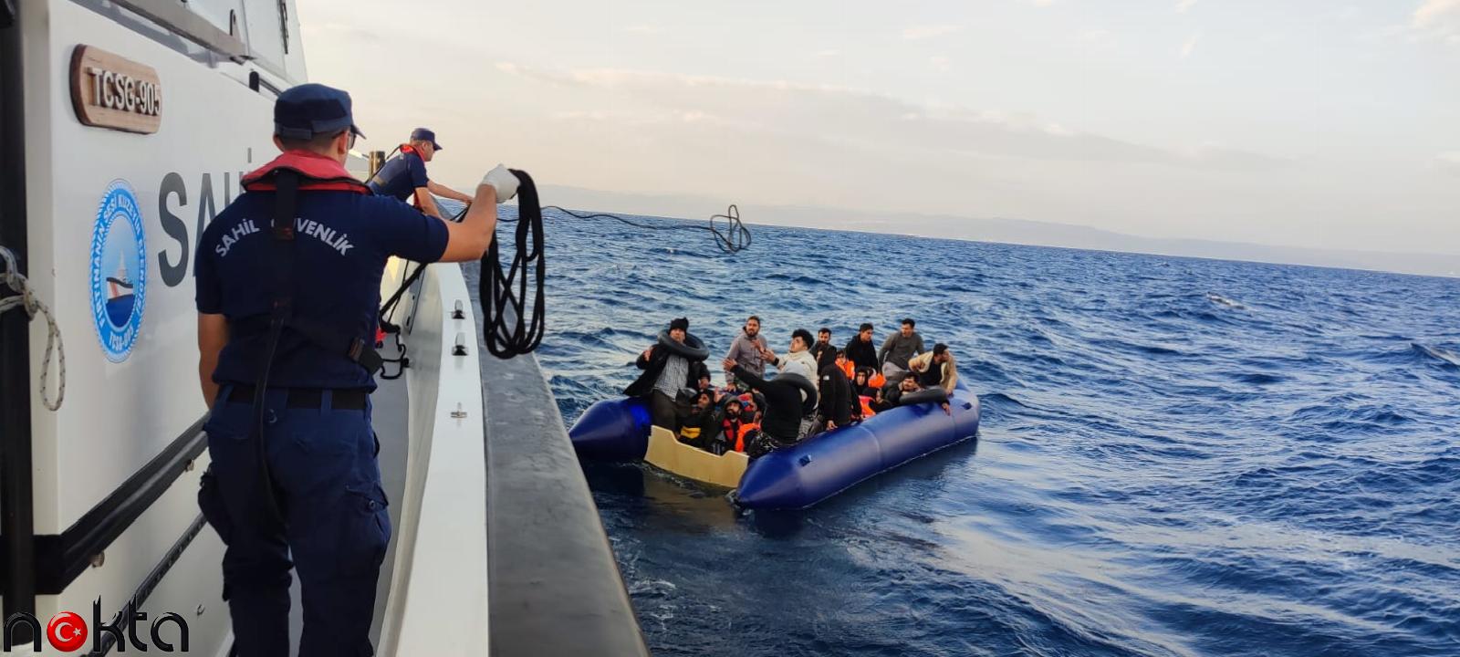 Ayrıca başka bir lastik bot içinde düzensiz göçmenlerin bulunduğu bilgisini alan ekipler, “TCSG-905” Sahil Güvenlik botu ile harekete geçerek 21 düzensiz göçmeni yakaladı.