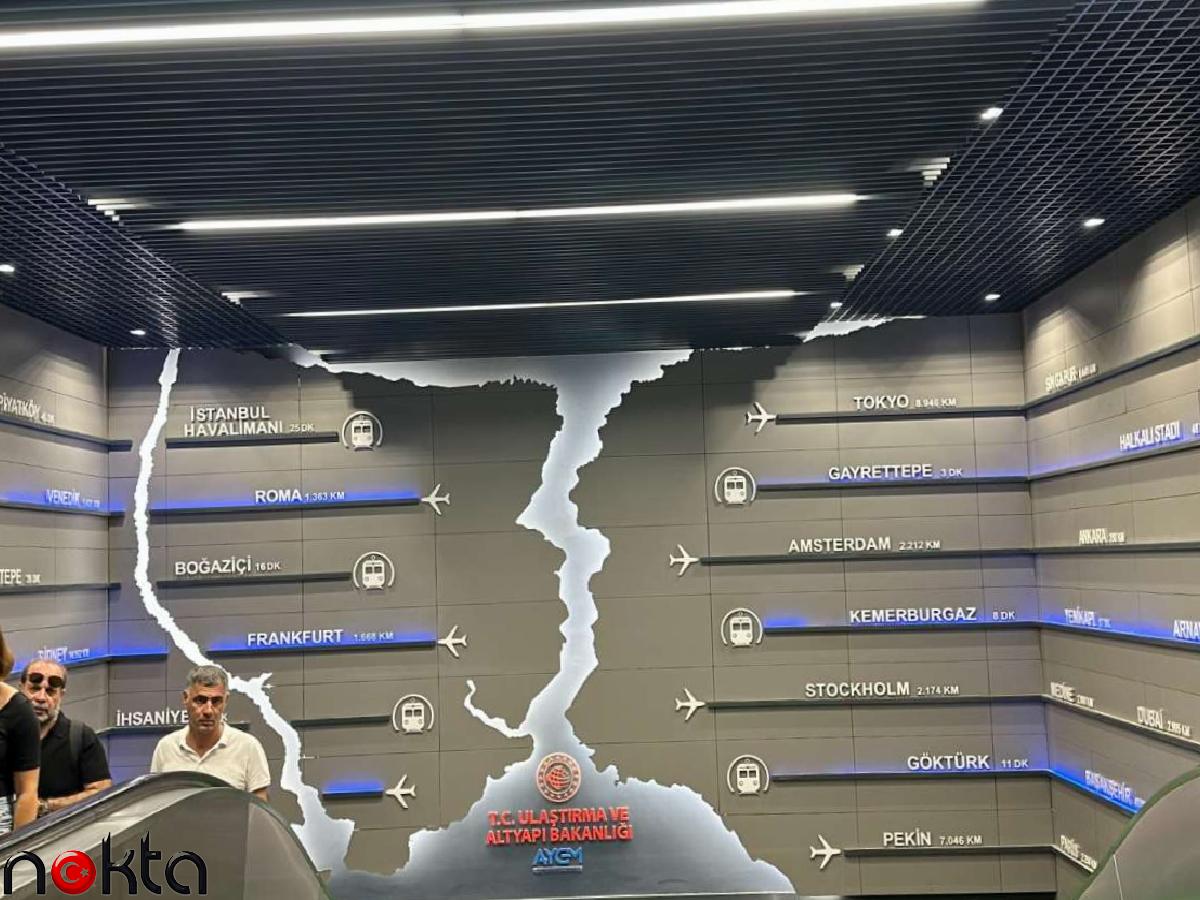 Peronda yer alan tuvaletlerde hizmet verilmiyor. Bir çalışan, “Kapılar kilitli. Borular patladı, 15 gündür bu halde” dedi. Yürüyen merdivenlerle metroya inmek isteyenlerin karşısına çıkan tabelada ise İstanbul için bir tehdit olarak gösterilen Kanal İstanbul’un da yer alması dikkat çekti. Tıpkı tabelada dünyanın kıymetli kentleri ara olarak yazıldı. Birtakım kentlerin tarafı tabelada yanlış gösterildi.