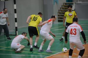 BURSA – Yıldırım Belediyesi ve Türkiye Spor Yazarları Derneği Bursa Şubesi; Basın Kuruluşları Arası Futsal Turnuvası düzenliyor. Yunus Emre Spor Kompleksi’nde; devam eden etkinliğe 16 basın kuruluşundan 160 basın mensubu katılıyor. 4 takımlı 4 grupta mücadele eden takımlardan gruplarında ilk iki sırayı alanlar çeyrek final oynayacak.