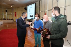 Büyükşehir Belediye Meclisi’nde ‘ayın vatandaşı olarak’ Uludağ’ın zirvesinde yıpranan Türk Bayrağı’nı yenisiyle değiştiren Mesut Ceylan, Yüksel Esen ve Hüseyin Aktaş seçildi. Başkan Aktaş, cesur dağcılara Türk Milleti’nin bağımsızlığını temsil eden bayrağa gösterdikleri saygı nedeniyle teşekkür ederek, birer plaket takdim etti.