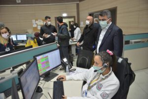Moral ziyaretlerinde Başkan Yılmaz’ın son durağı ise 112 Acil Çağrı Merkezi ile Yüksek İhtisas Eğitim ve Araştırma Hastanesi oldu.