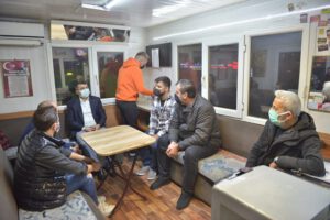 2020 yılının son saatlerinde ziyaretler gerçekleştiren Yıldırım Belediye Başkanı Oktay Yılmaz’a AK Parti Bursa Milletvekili Atilla Ödünç, ve AK Parti Yıldırım İlçe Başkanı Ali Erbay eşlik ederken, ilk olarak Yüksek İhtisas Taksi Durağı’ndaki taksici esnafıyla bir araya geldi.