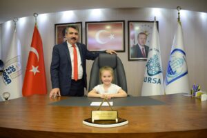 YILDIRIM BELEDİYE BAŞKANI OKTAY YILMAZ, 23 NİSAN ULUSAL EGEMENLİK VE ÇOCUK BAYRAMI DOLAYISIYLA MAKAMINI YILDIRIMLI MİNİKLERE DEVRETTİ.