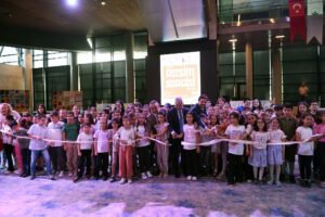 Konuşmaların ardından kurdele kesimiyle birlikte serginin açılışını gerçekleştiren protokol üyeleri, çocuklarla birlikte sergiyi gezerek tüm resimleri dikkatlice inceledi.