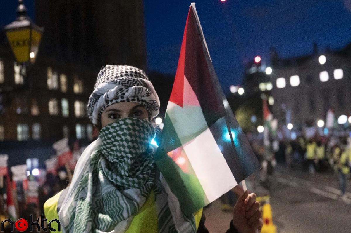 Çeşitli sivil toplum kuruluşlarının davetiyle İngiltere Parlamentosu binası önünde toplanan binlerce kişi, Filistin lehine sloganlar atarak acil ateşkes çağrısında bulundu.