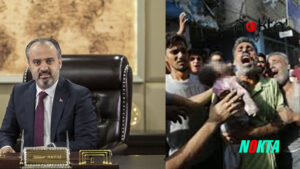 BURSA – ‘Uyumayın, susmayın, Gazze’ye sahip çıkın’ temasıyla yapılan sözde etkinlikte, boya fırçalarını ellerine alan bir kaç Alinur Aktaş destekçisi yine sözde dünyaya barış mesajları gönderdi.
