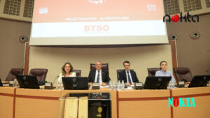 Deprem gerçeği ışığında şehrin dönüşümü için yol haritasının önemine değinen Başkan Burkay, “Bu gerçekle yaşamayı ve planlamamızı buna göre yapmayı görev edinmeliyiz. 6 Şubat depreminin ardından meclisteki konuşmamızda acil şekilde kentteki sadece sanayi tesislerinin değil, tarihi çarşı ve hanlar bölgesi başta olmak üzere tüm ticarethanelerin içerisinde olduğu deprem risk haritasının çıkartılması gerektiği vurgulamıştık. Geçtiğimiz günlerde akademik odalarla yaptığımız toplantıda da deprem riski haritasını çıkartılması ile ilgili fikir birliğine vardık. Bu çalışmayı Büyükşehir Belediyesi başta olmak üzere ilçe belediyeler ve akademik odalarla çıkarma kararı aldık. Biz BTSO olarak bu çalışmayı çok önemsiyoruz. Bizim görevimiz ülkemizin bugüne kadar elde ettiği kazanımları geleceğe taşımak. BTSO olarak şehrin ortak aklına önem veriyoruz. 55 bine yakın üyemiz, 70 komitemiz ortaya konan vizyon ve projeleri hayata geçirmek için var gücüyle çalışıyor. Biz göreve geldiğimiz günden bu yana hep ortak paydamız güçlü bir Bursa dedik. Her projemizin merkezine Bursa’yı koyduk. Bizim için Bursa’nın menfaatleri önemli.” dedi.