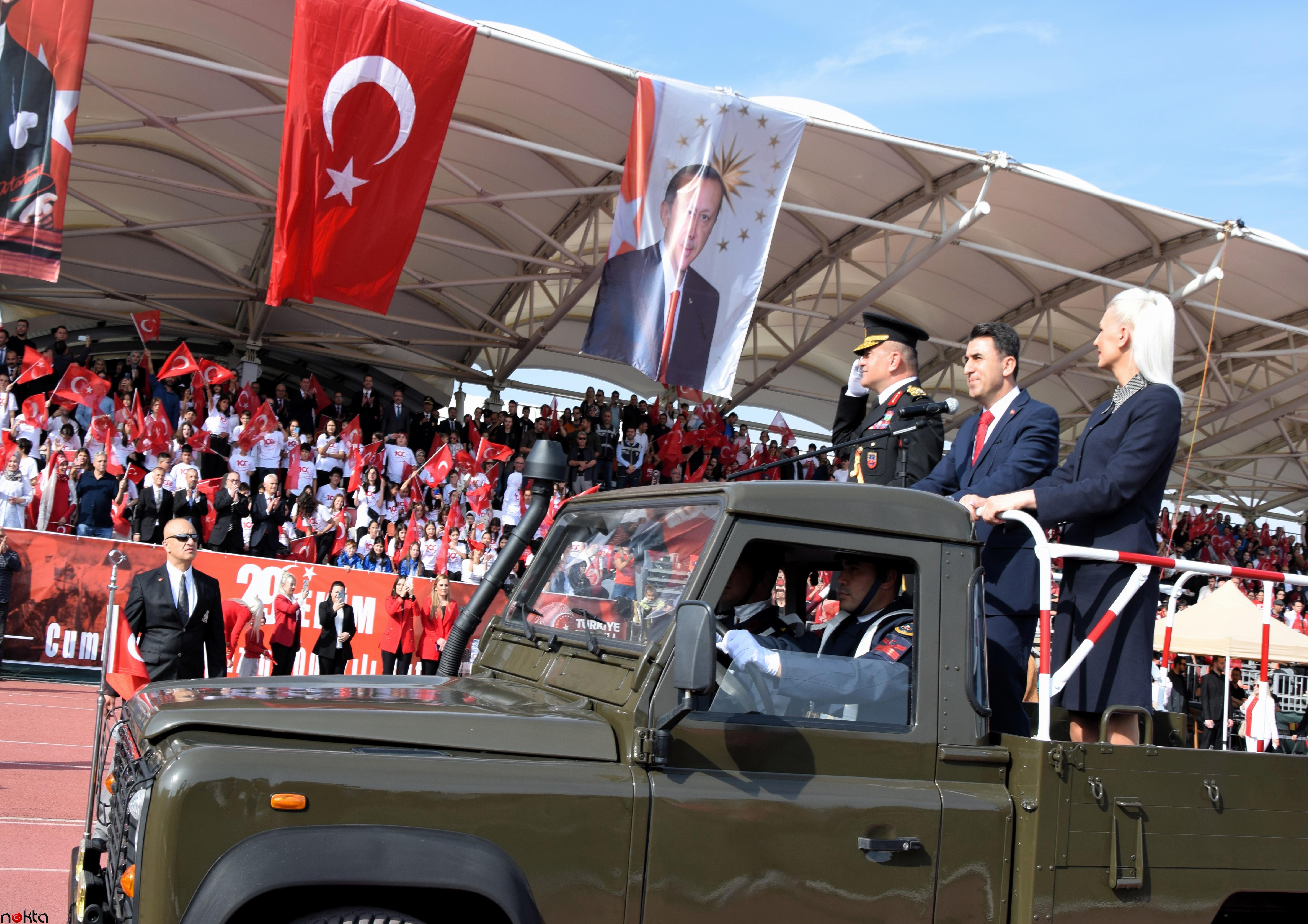 Vali Aktaş’ın konuşmasının ardından İl Jandarma Komutanlığı Asayiş Komando Bölük Komutanlığına bağlı askerler gösteri düzenledi. Tören, Mehteran gösterisi ve kortej geçişinin yapılmasıyla sona erdi.