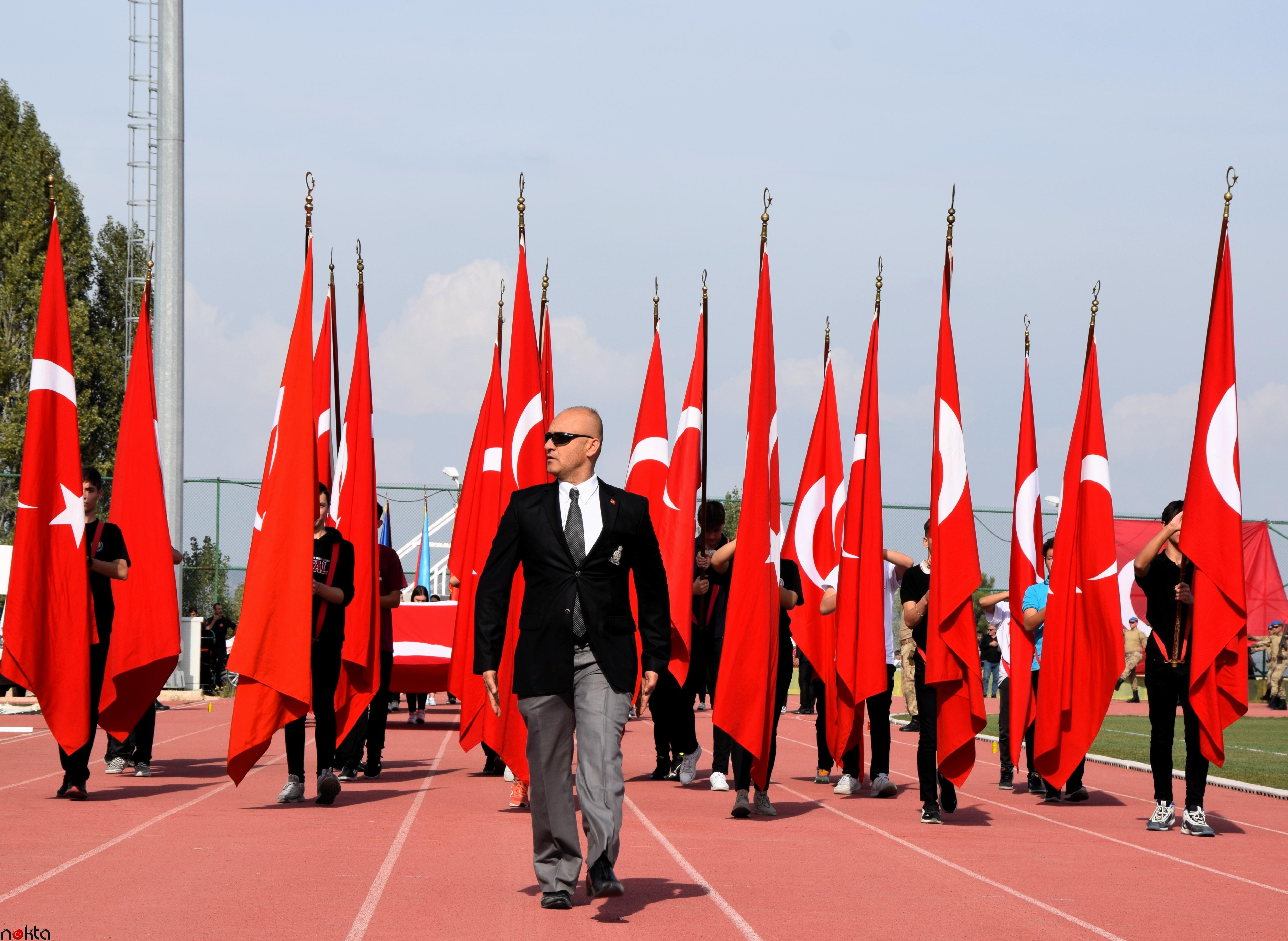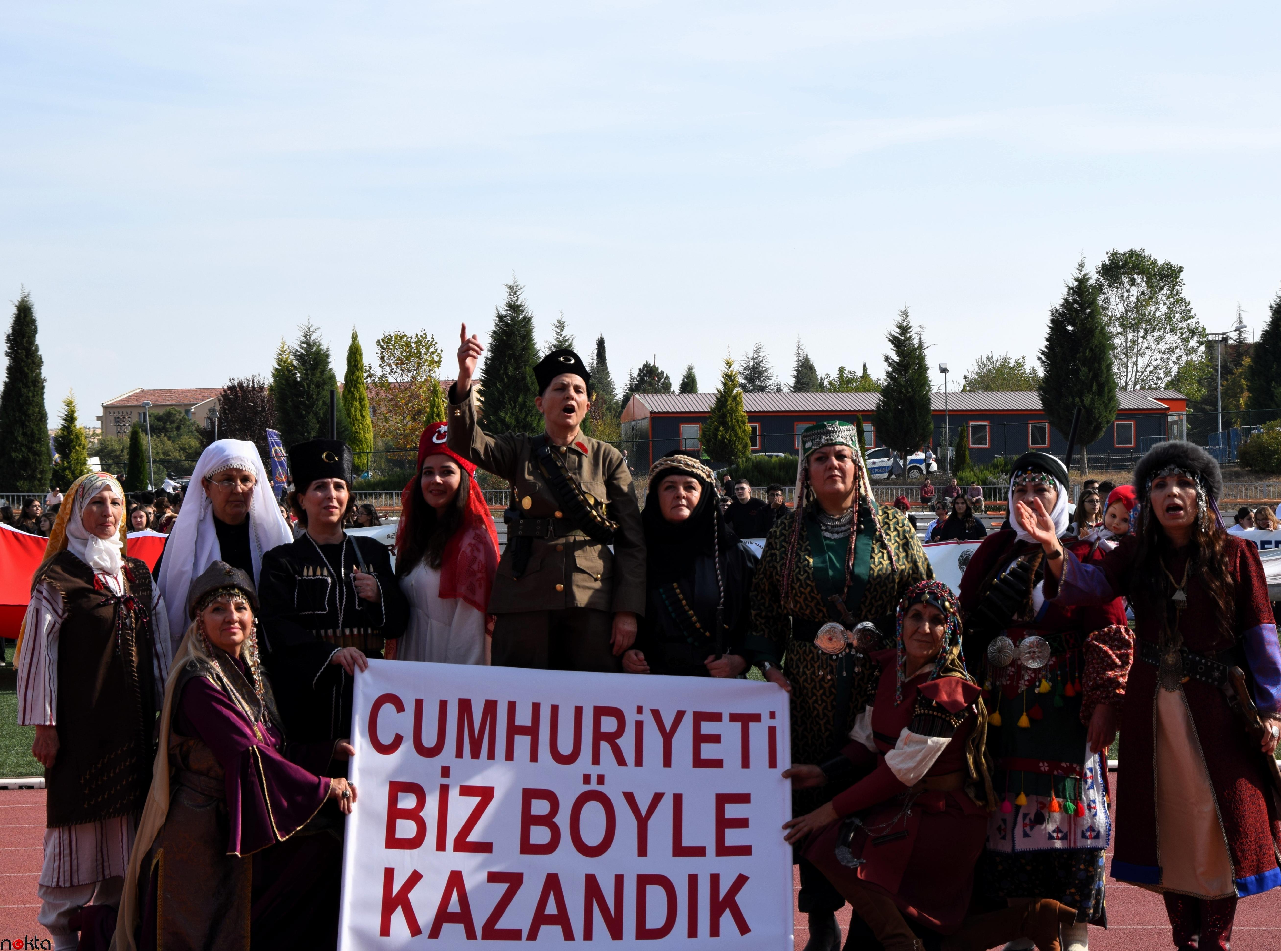 Saygı duruşunda bulunulması ve İstiklal Marşı’nın okunmasıyla başlayan törende, şiirler okundu, halk oyunu gösterileri sunuldu. Program, gaziler, öğrenciler, sporcular, jandarma, polis, AFAD, itfaiye ve sağlık ekiplerinden oluşan kortejin geçişiyle tamamlandı.