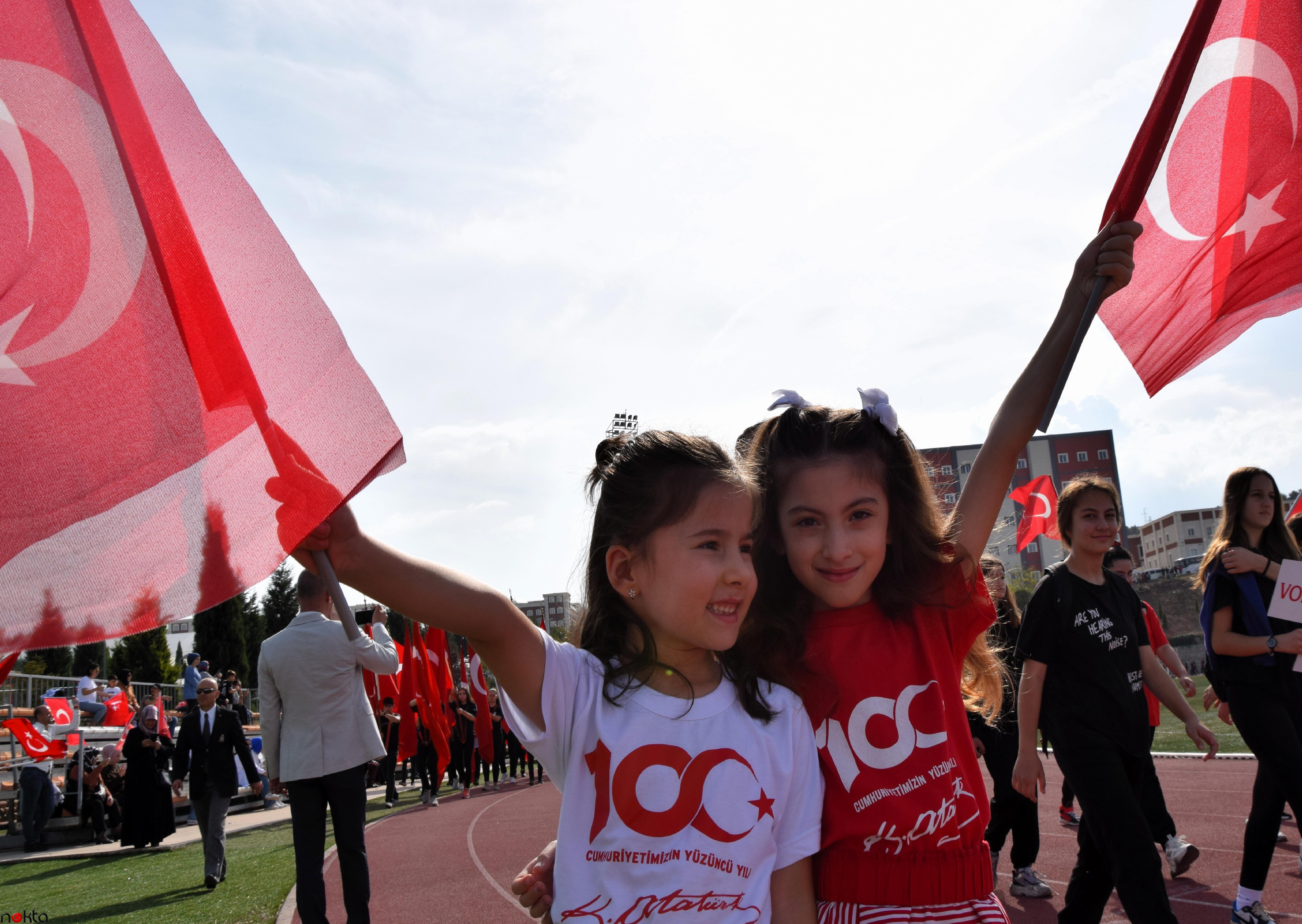 Tören, Cumhuriyet Bayramı nedeniyle düzenlenen yarışmalarda dereceye giren öğrencilere ödüllerin verilmesi, şiirlerin okunması ve halk oyunları gösterisi ile öğrencilerden oluşan koronun Tugay Bandosu eşliğinde şarkı ve marşlar seslendirmesiyle sona erdi.