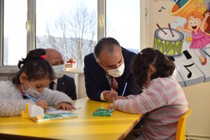 Başkan Aktaş ve protokol üyeleri, daha sonra merkezi gezerek, eğitim alan çocuklarla sohbet etti.