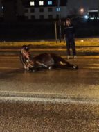 Bursa’nın İnegöl ilçesinde seyir halindeki kamyonet, bir anda yola çıkan sahipsiz ata çarptı. Çarpma nedeniyle atın arka ayaklarında kırıklar oluştu. ( Uğur Çiçek – Anadolu Ajansı )