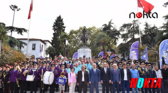Konuşmaların ardından eline baton alan Bursa Büyükşehir Belediye Başkanı Alinur Aktaş’ın şefliğinde bando takımları hep beraber Anafartalar Marşı’nı çaldı.