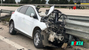 Bursa’dan İzmir’e giden Mustafa Burak Ekerer yönetimindeki 35 AIS 828 plakalı otomobil, Bursa Şehir Hastanesi yol ayırımında kontrolden çıkarak refüjdeki bariyerlere çarptı.