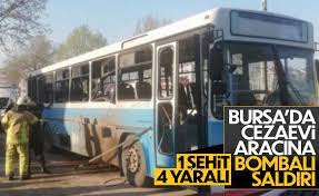 BURSA – Bursa’da cezaevi aracına bombalı saldırı Bursa’nın Osmangazi ilçesinde cezaevine göreve giden infaz koruma memurlarının içinde bulunduğu otobüste saat 07.30 sıralarında patlama meydana geldi. Patlamada büyük hasar gören otobüste, ilk belirlemelere göre 1 kişi şehit oldu, çok sayıda kişi yaralandı. Yaralılar çevredeki hastanelere götürülürken, araç bir akaryakıt istasyonuna çekildi.