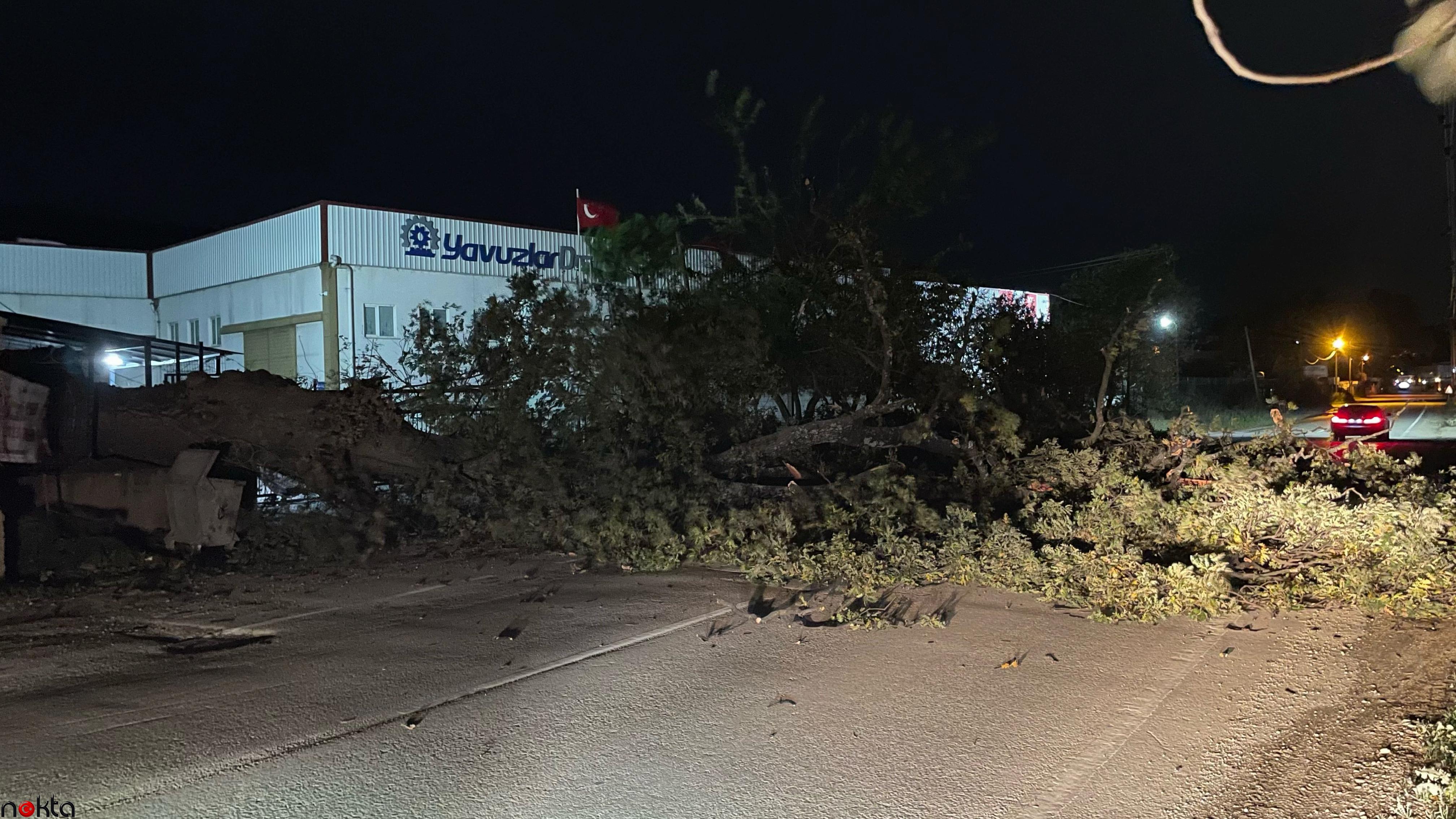 Rüzgar nedeniyle bazı ağaçların yollara ve araçların üstüne devrildiği, çatıların uçtuğu öğrenildi.