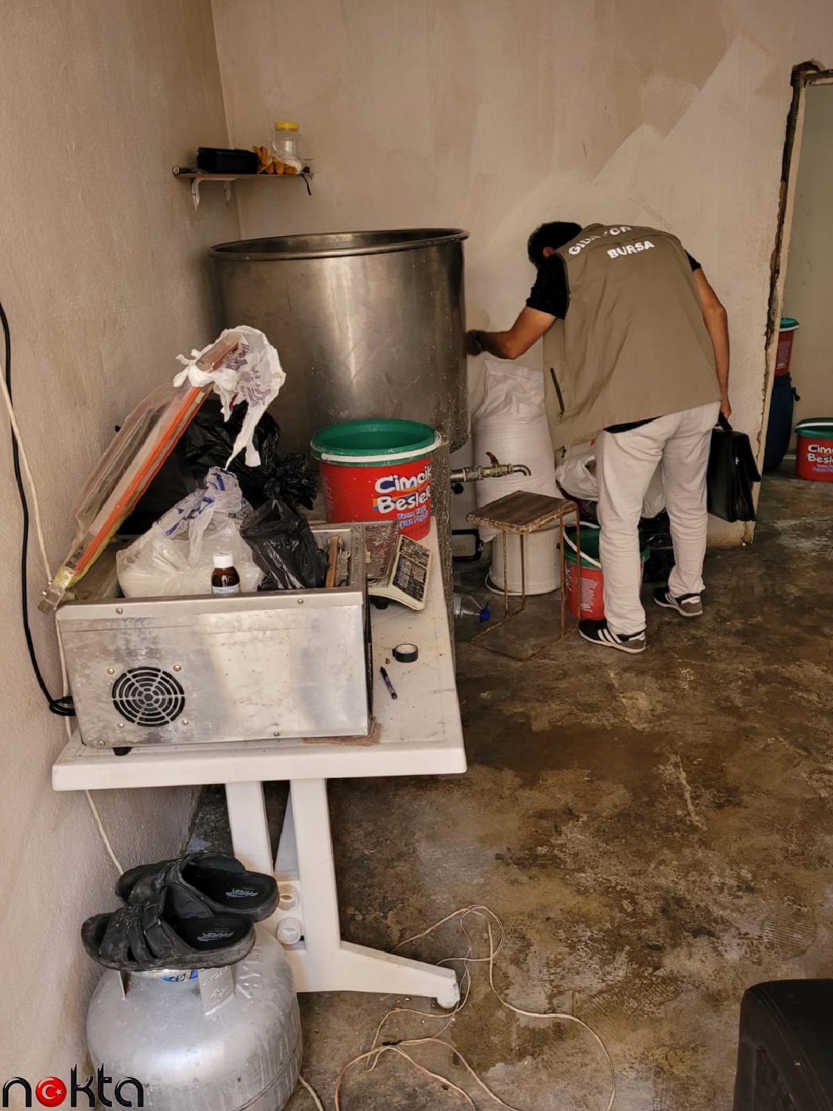 BURSA (AA) – Bursa’da sıhhatsiz şartlarda ve ruhsatsız üretim yapıldığı belirlenen peynir imalathanesi mühürlenerek, işletmecisi hakkında yasal süreç başlatıldı.