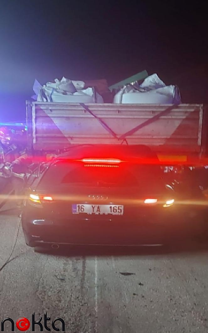 Yasin Altınkaynak (27) idaresindeki 16 YA 165 plakalı otomobil, Bursa-İzmir kara yolu Başköy Mahallesi mevkisinde Y.A’nın kullandığı 45 ADU 021 plakalı tıra arkasından çarptı.