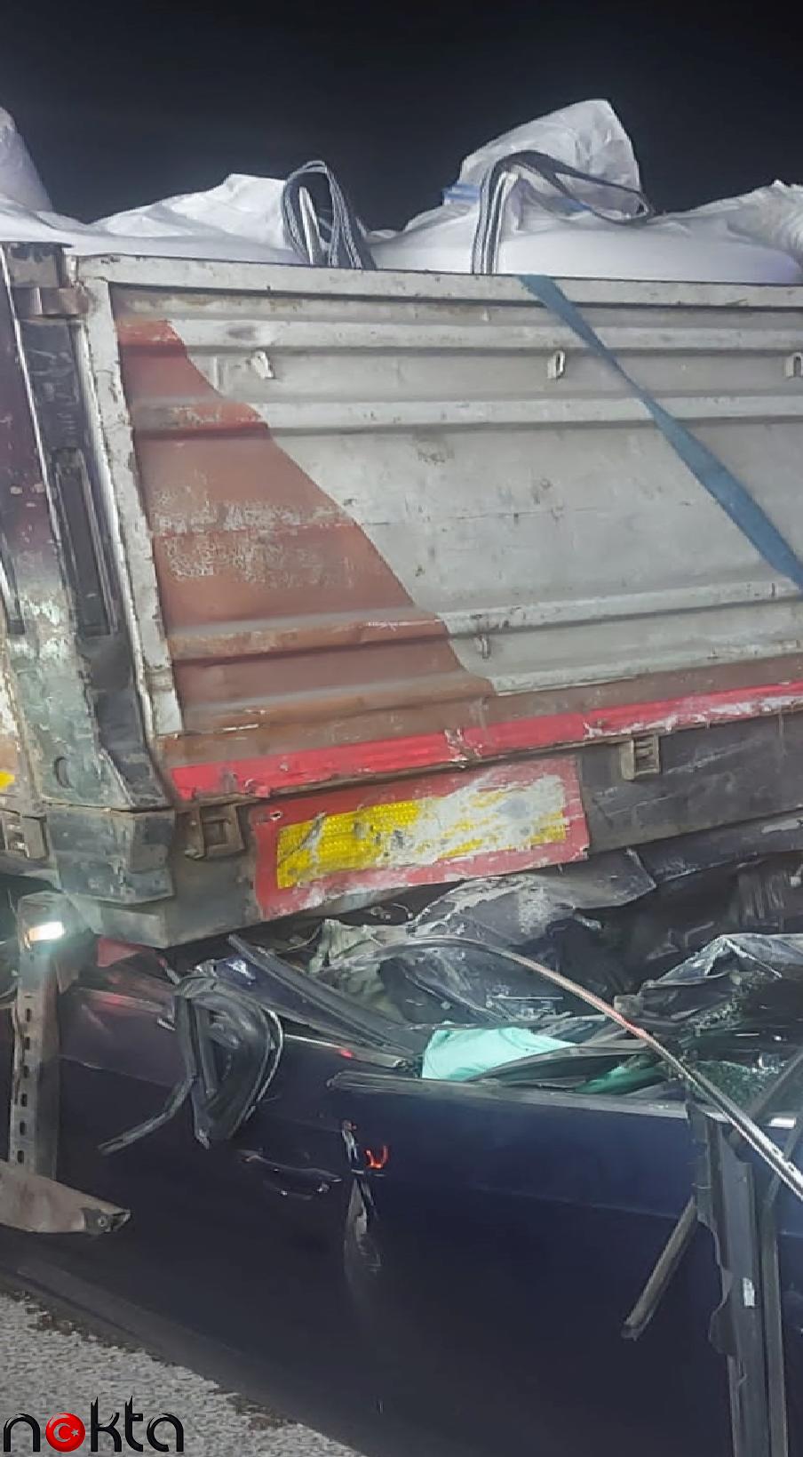 Çarpmanın şiddetiyle otomobilin tırın altına girdiği kazanın ardından olay yerine 112 Acil Sağlık, jandarma ve polis ekipleri sevk edildi.