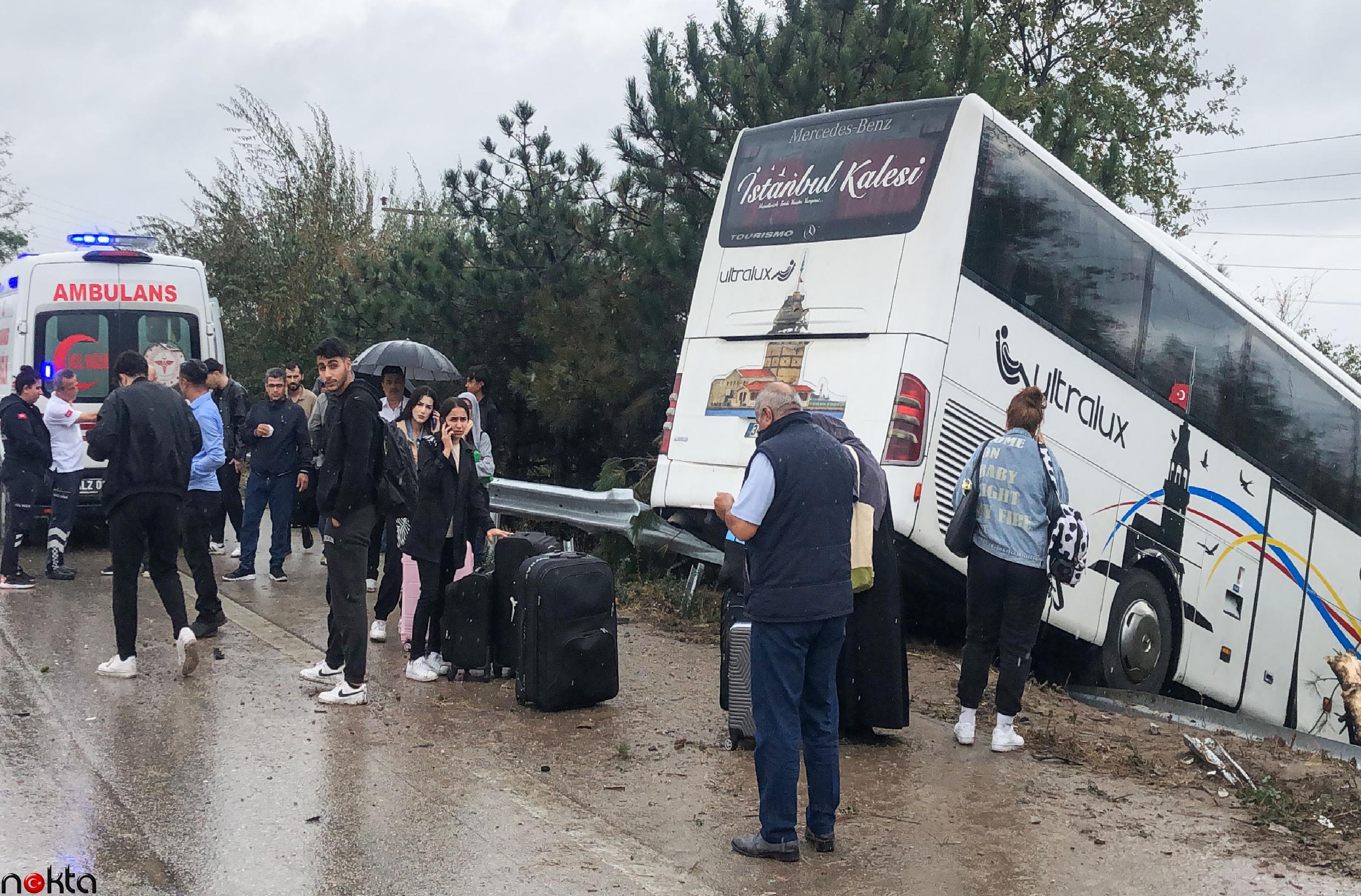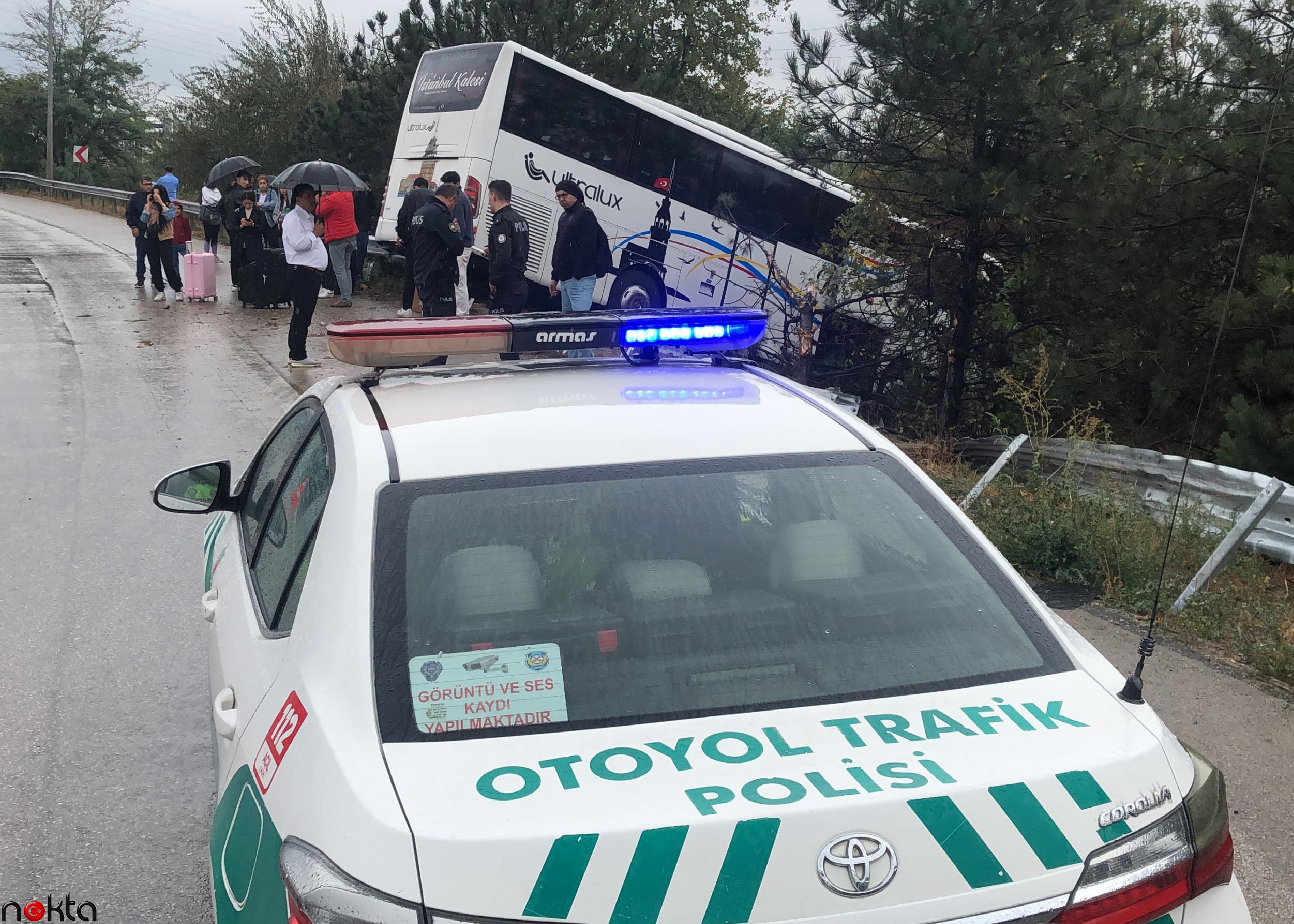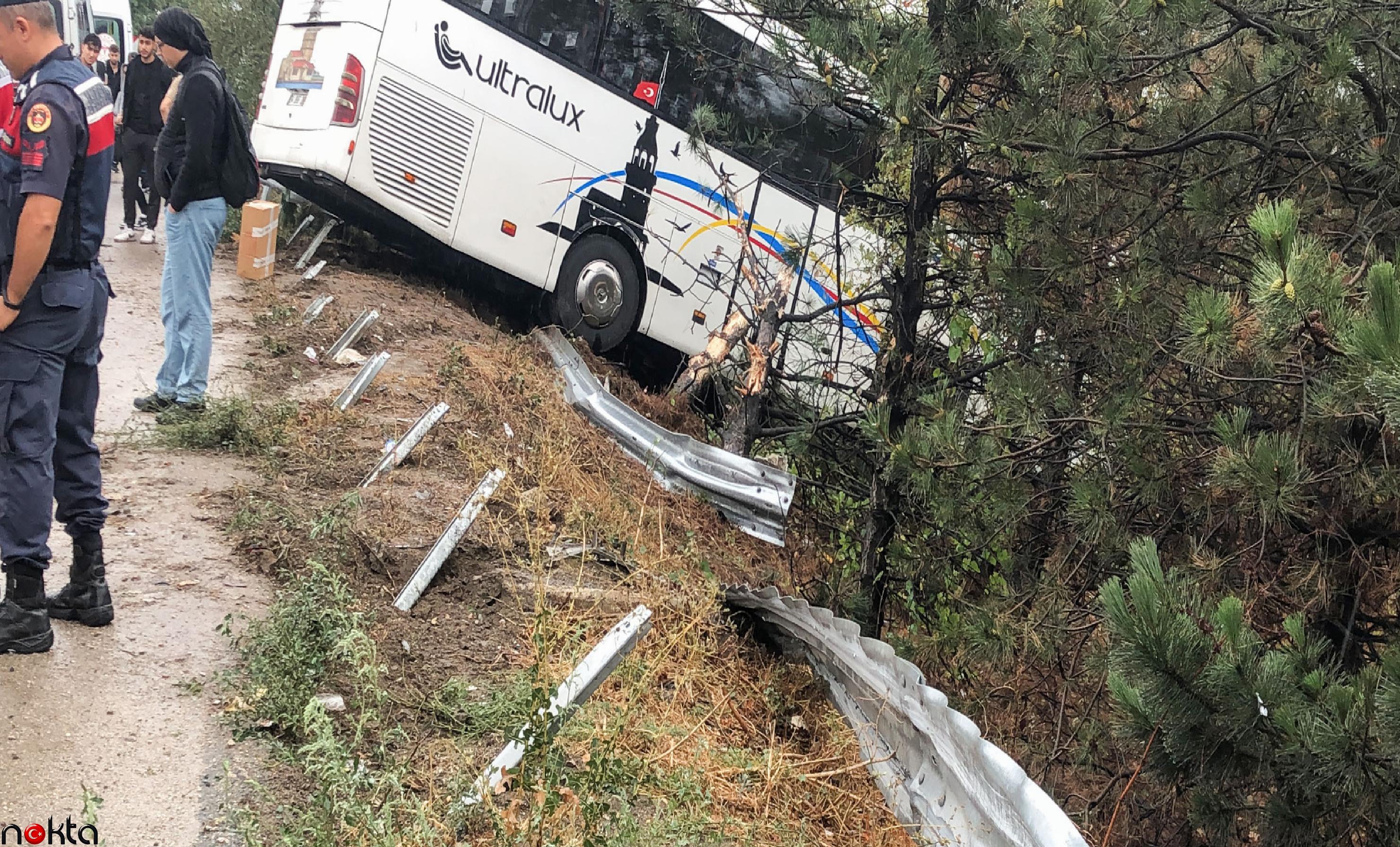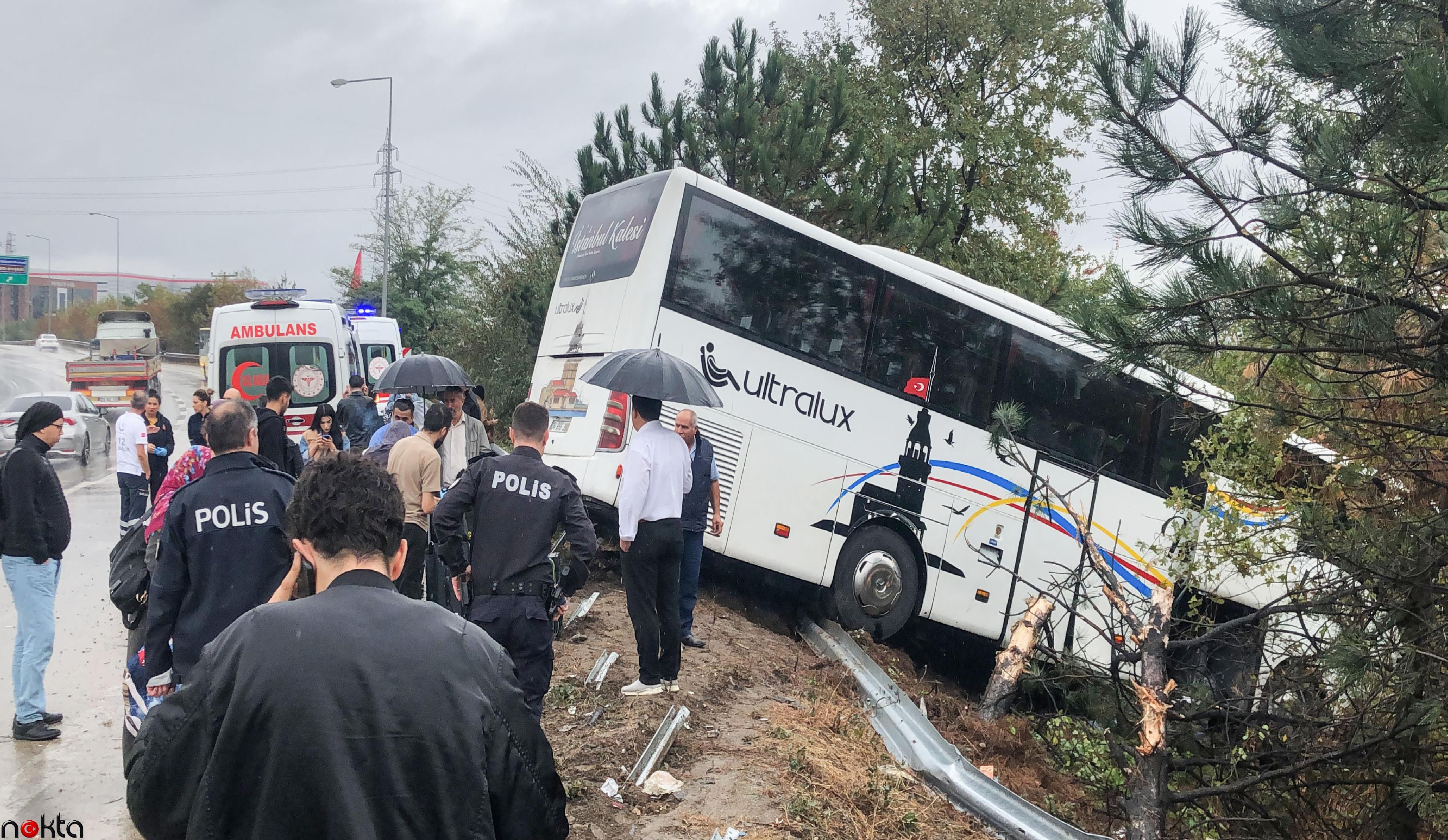 Bariyerleri aşan otobüs ağaçlık alana girerek durabildi. Kazanın ardından olay yerine 112 Acil Servis, AFAD ve itfaiye ekipleri sevk edildi. Yolcular, ekipler tarafından otobüsten tahliye edildi.