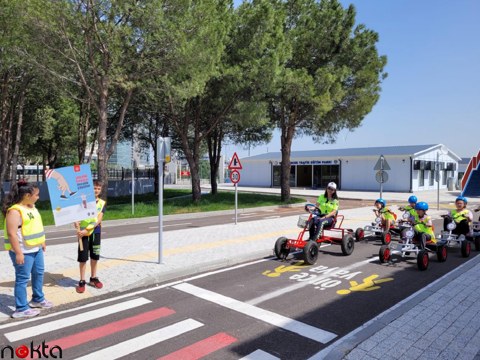 “Çocuk Trafik Eğitim Parkları Projesi” kapsamında İçişleri Bakanlığı trafik kurallarını iyi bilen, donanımlı nesillerin yetişmesine katkıda bulunmak amacıyla yapılan bisiklet ve yürüyüş yolunun yer aldığı projede öğrenciler bilgilendirmeye devam ediliyor.