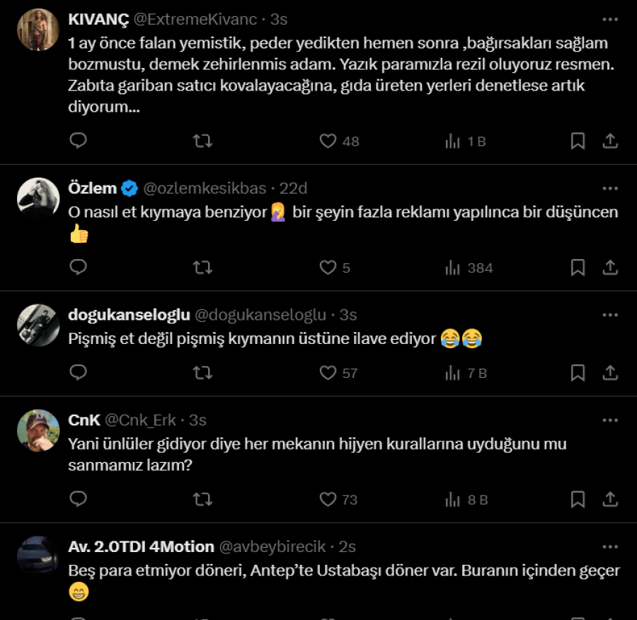 Sosyal medyada tepki yağdı Denetle.com’un X platformunda yaptığı paylaşımda, Bursa‘nın ünlü kebapçısında dönerin üzerine çiğ et ilave edildiği görülen bir fotoğraf büyük tepki topladı.