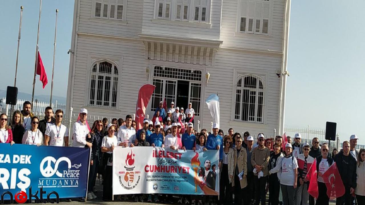 Mudanya ile Çankaya belediyelerince düzenlenen “Mütareke’den Cumhuriyet’e 100. Yıl Meşalesi Yürüyüşü” öncesinde 11 Ekim 1922’de Kurtuluş Savaşı’nı sona erdiren Mudanya Mütarekesi’nin imzalandığı Mütareke Evi Müzesi önünde tören yapıldı.
