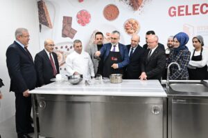 BURSA – Çalışma ve Sosyal Güvenlik Bakanı Prof. Dr. Vedat Işıkhan, Vali Mahmut Demirtaş, AK Parti Bursa İl Başkanı Davut Gürkan ve beraberindeki heyetle birlikte BTSO’nun DOSAB’da bulunan BTSO Eğitim ve Teknoloji Kampüsü’nü ziyaret etti. Vedat Işıkhan, BTSO Başkan Yardımcısı İsmail Kuş, BTSO Yönetim Kurulu üyeleri Muhsin Koçaslan, Abidin Şakir Özen ve Meclis Başkan Yardımcısı Metin Şenyurt’un ev sahipliği yaptığı ziyarette, BUTEKOM, BUTGEM, BTSO MESYEB, Mutfak Akademi, Enerji Verimliliği Merkezi, Bursa Model Fabrika ve Yeni Nesil Araç Teknolojileri Mükemmeliyet Merkezi’nde incelemelerde bulundu. Bakan Işıkhan, ilk defa böylesine kapsamlı bir merkezi inceleme fırsatı bulduğunu söyledi. Tüm Türkiye için örnek alınabilecek bir kampüsle karşılaştıklarını ifade eden Işıkhan, “Gençlerimizin meslek edindirme sürecine böyle bir ortam hazırladıkları için başta BTSO yönetimi olmak üzere emeği geçen herkese teşekkür ediyorum.” ifadelerini kullandı.