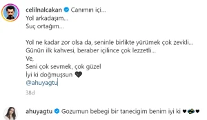 Ahu Yağtu da “Kardeşlerim”deki rol arkadaşı Celil Nalçakan’ın mesajına “Gözümün bebeği bir taneciğim benim iyi ki” mesajıyla yanıt verdi.