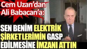 Cem Uzan’dan Babacan’a: Sen benim elektrik şirketlerimin gasp edilmesinin altına imzanı attın Genç Partisi eski Genel Başkanı Cem Uzan, DEVA Partisi Genel Başkanı Ali Babacan’a “Sen benim sahip olduğum elektrik şirketlerimin barajlarının gasp edilmesini altına imza attın. Hırsız” dedi.