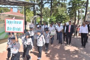 BURSA – 5 Haziran Çevre Günü, Yenişehir’de çeşitli etkinliklerle kutlanıyor. Etkinlikler kapsamında Aydoğdubey İlkokulu öğrencileri tarafından düzenlenen programa Yenişehir Kaymakamı Mustafa Güney, Yenişehir Belediye Başkanı Ercan Özel ve protokol üyeleri katıldı. Aydoğdubey İlkokulu’ndan Osmangazi Millet Bahçesi’ne kadar öğrencilerle birlikte yürüyen protokol üyeleri, burada çevre temizliği yaptı. Öğrenciler daha sonra Kaymakam Mustafa Güney ve Belediye Başkanı Ercan Özel’e geri dönüşümle yaptıkları ürünleri sergiledi.