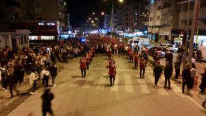 Kutlamalar, güneşin batışıyla birlikte görkemli bir Fener Alayı ile devam etti. Yüzlerce meşale, Mustafakemalpaşa’nın sokaklarını bir ışık seline çevirdi. Fener Alayı’nın ardından Adnan Menderes Meydanı’nda toplanan kalabalık, DJ performansıyla devam etti. Meydanı dolduran binlerce kişi, müziğin ritmine kendini kaptırarak, enerjilerini doruklara taşıdı.