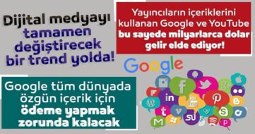 Dijital medyada milyar dolarlık devrim. Avrupa’da yayıncıların içeriklerini kullanan Google ve YouTube bu sayede milyarlarca dolar gelir elde ediyor. Avrupa’da yeni telif yasası ile yayıncılara para ödemeye başlayan Google tüm dünyada özgün içerik için ödeme yapmak zorunda kalacak.