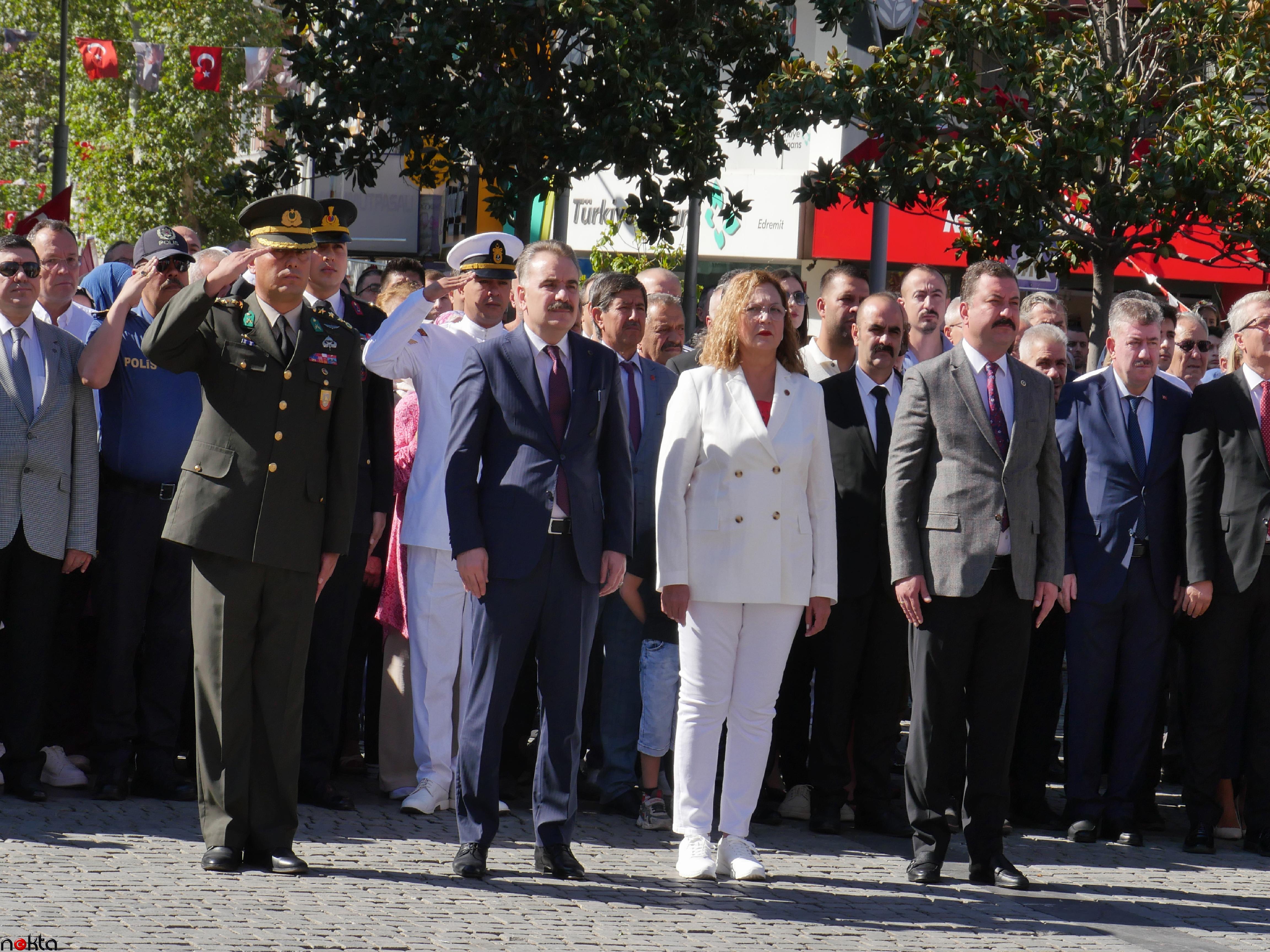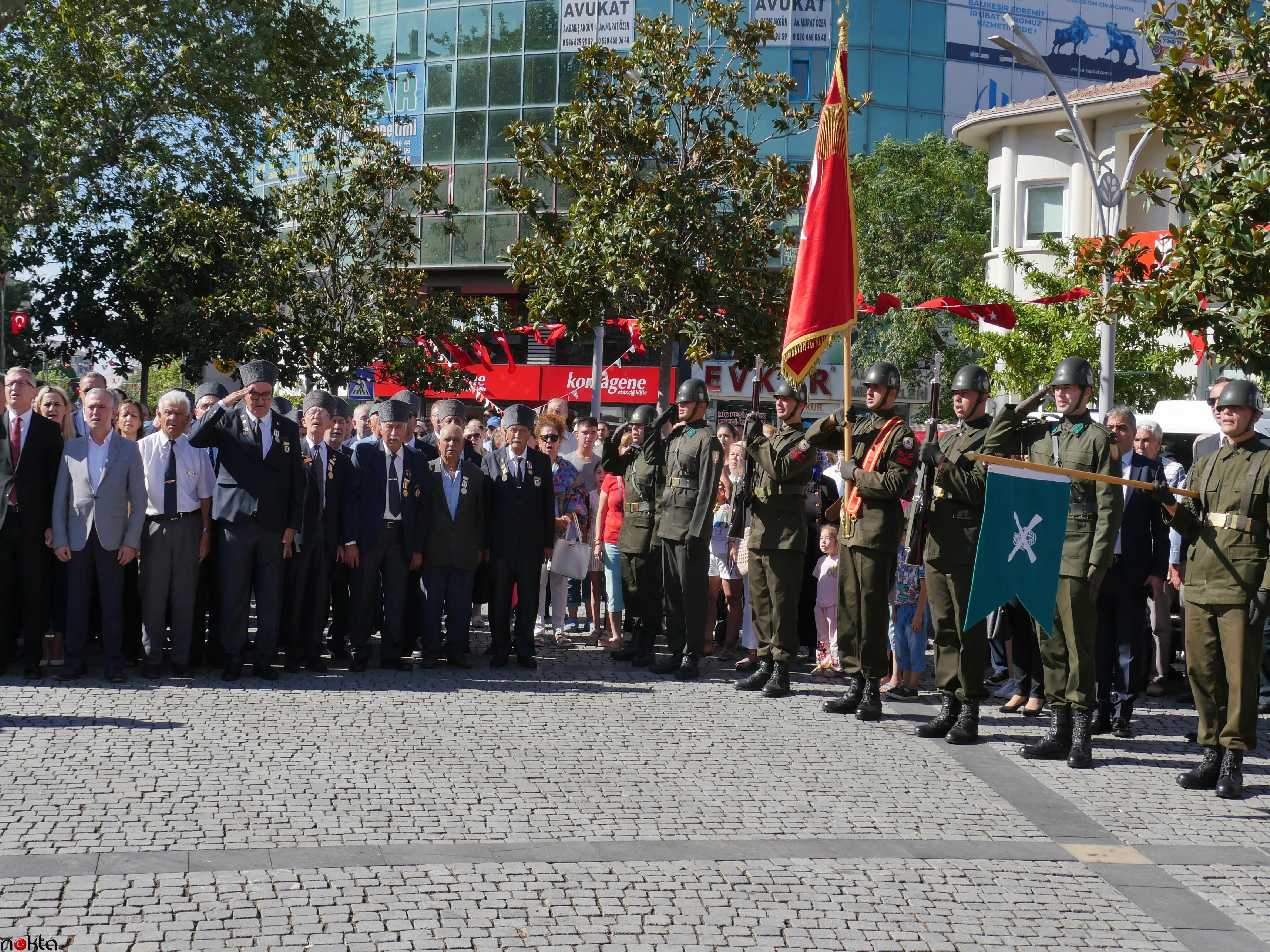 Kutlamalara, MHP Balıkesir Milletvekili Ekrem Gökay Yüksel, Edremit Kaymakamı Ahmet Odabaş, 19. Motorlu Piyade Tugayı Kumandanı Vekili Piyade Albay Fikret Poyraz Sinmez, protokol mensupları, muharip gaziler, sivil toplum kuruluşlarının temsilcileri, dernek ve oda liderleri, muhtarlar ile çok sayıda vatandaş katıldı.