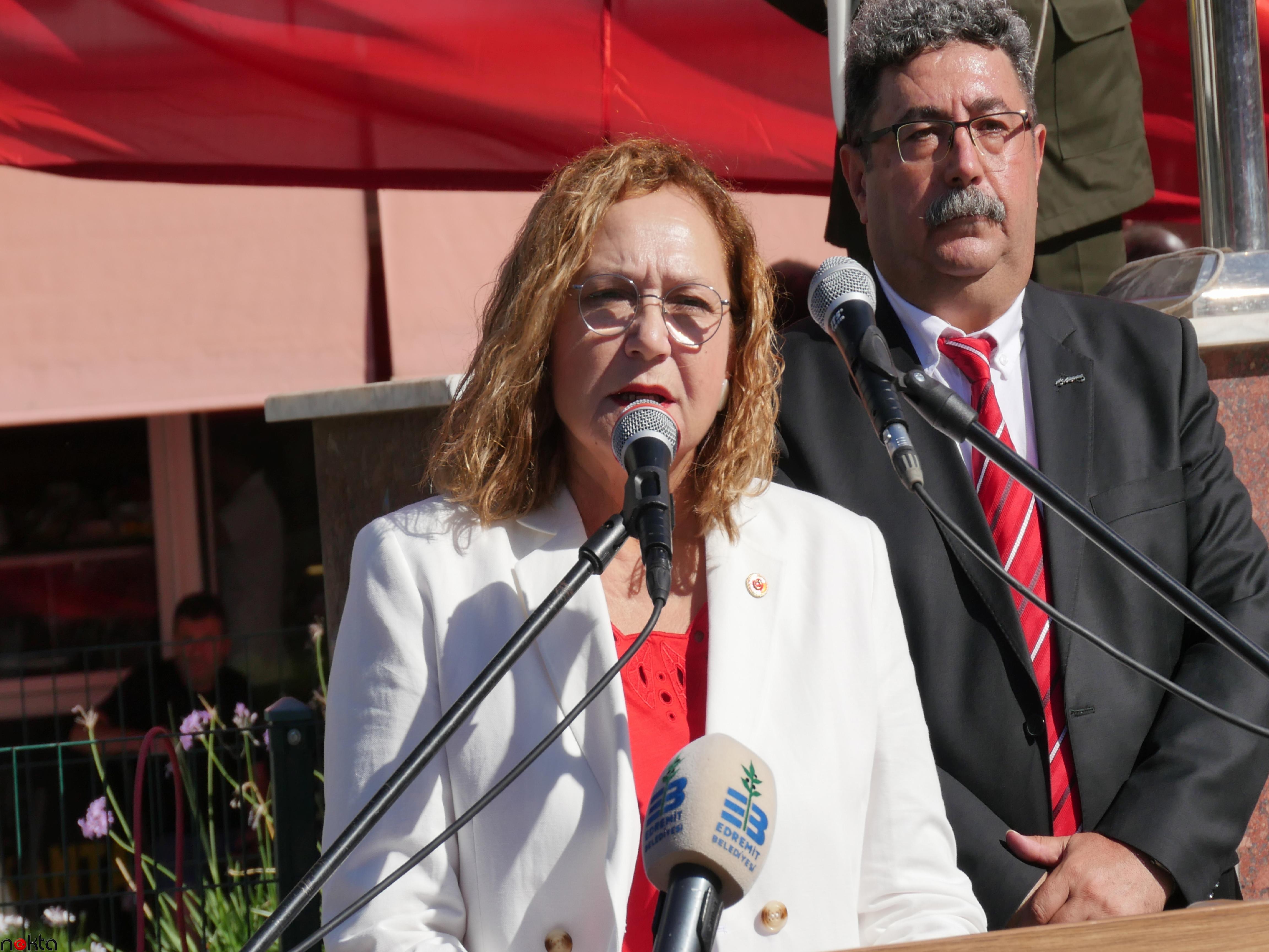 Edremit Belediye Lider Vekil Nezahat Salon, yaptığı konuşmada, ilçenin kurtuluş gününü coşkuyla kutladıklarını belirterek, “Bugün Ulu Liderimiz Gazi Mustafa Kemal Atatürk ve silah arkadaşlarının Anadolu’da Kuvayımilliye ruhuyla başlattığı özgürlük çabası sonucunda 797 gün düşman işgali altında kalan Edremit’in kurtuluş günü olup, birebir vakitte Cumhuriyet’imizin kuruluş temellerinin atıldığı gündür.” dedi.