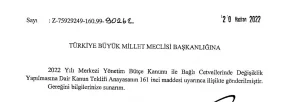 Ek Bütçe Mecliste, İlave Vergi 1 Trilyon 83 Milyar Lira Cumhurbaşkanı Sayın Recep Tayyip ERDOĞAN’ın imzasıyla “2022 Yılı Merkezi Yönetim Kanunu ile Bağlı Cetvellerinde Değişiklik Yapılmasına Dair Kanun Teklifi”, daha anlaşılır ifade ile EK BÜTÇE Teklifi Meclise sunuldu.