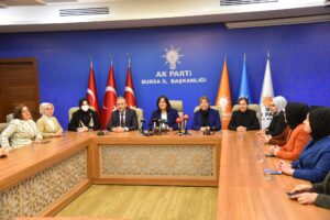 BURSA – Emel Gözükara Durmaz: ”Kadınlarımızın her alandaki hakları hükümetlerimiz dönemlerinde güvence altına alındı”   AK Parti kadın kolları teşkilatları tarafından 81 ilde eş zamanlı olarak gerçekleştirilen basın açıklamalarına il ana kademe, kadın ve gençlik kolları yönetimleri de katıldı. Toplantıda konuşan AK Parti Bursa İl Kadın Kolları Başkanı Emel Gözükara Durmaz,