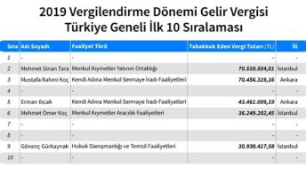 Gelir İdaresi Başkanlığı, 2019 vergilendirme dönemine ilişkin yıllık gelir vergisi ve kurumlar vergisi beyannamelerinin değerlendirilmesi sonucunda Türkiye genelinde en fazla vergi beyan eden 100 mükellef listesini açıkladı.