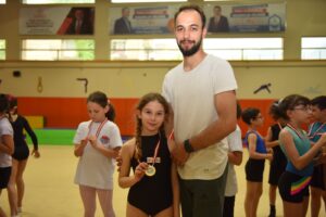 BURSA – Genç Sporcuların Artistik Cimnastik yetenekleri görücüye çıktı Naim Süleymanoğlu Spor Kompleksi’nde gerçekleştirilen turnuvaya 7-10 yaş grubu 180 sporcu katıldı. Genç sporcuların artistik cimnastik yeteneklerini sergileme fırsatı buldukları yarışma ile minik cimnastikçiler, aylar süren çalışmalarının ardından zorlu rutinleri başarıyla tamamladı ve mükemmel bir performans sergiledi. Yarışmaya katılan sporculara madalyaları takdim edildi.