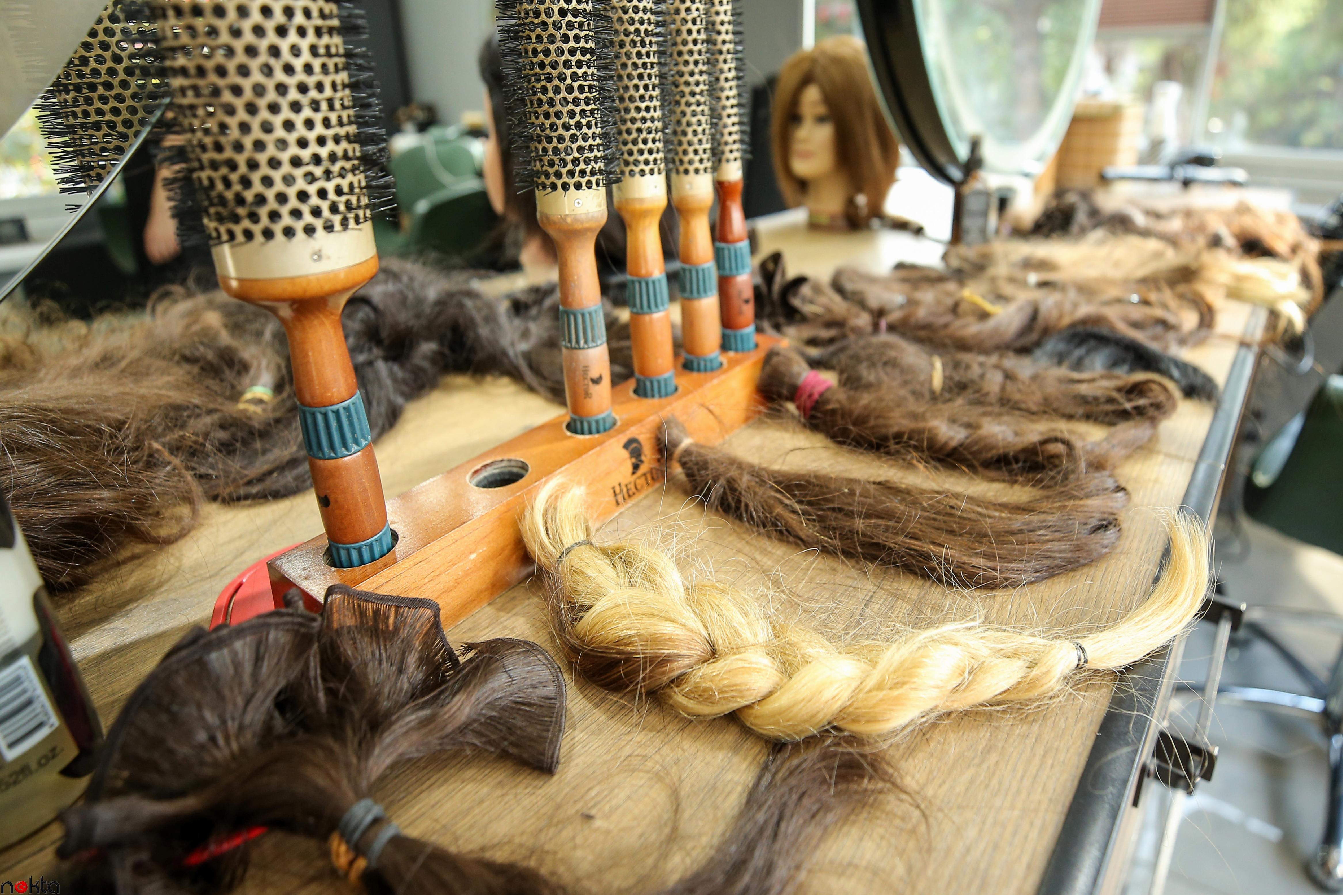 Kader Akçay, 5 yıldır işletmesinde kesilen her saçı, müşterilerin rızasını alarak biriktirdiğini belirtti.