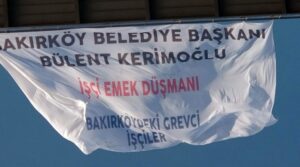 Bakırköy Belediyesi Başkanı Bülent Kerimoğlu’nun sıfır zam dayatmasına karşı hakları için greve çıkan ve iki aydır grevde olan Bakırköy Belediyesi işçileri, Boğaziçi Köprüsü’ne pankart astı. Köprüye “Bakırköy Belediye Başkanı Bülent Kerimoğlu işçi emek düşmanı” yazılı pankart asan 10 işçi gözaltına alındı.